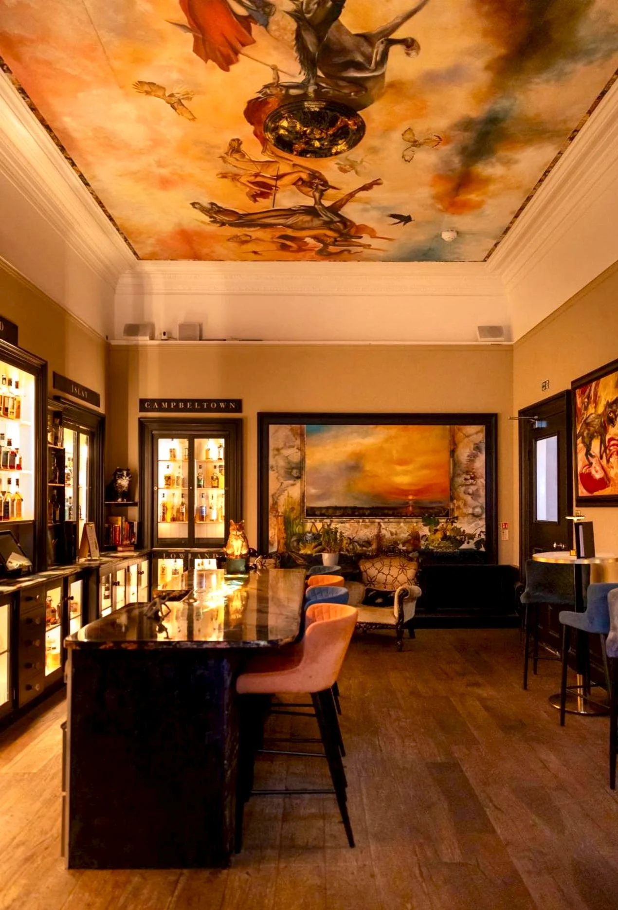 Artstone Concrete was commissioned to design and build a bespoke whisky tasting bar for an Edinburgh hotel, creating a space that balanced craftsmanship with contemporary edge. The project combined polished plaster wall finishes with a striking epoxy and cast-concrete bar, complemented by durable epoxy table tops designed for both style and longevity. The result is a refined yet robust setting, where texture, materiality and precision come together to enhance the guest experience while standing up to the demands of a busy hospitality environment.